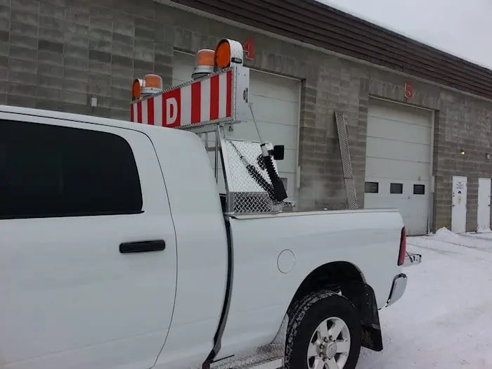 Vehicles equipped with orange and blue lighting to ensure constant site visibility.